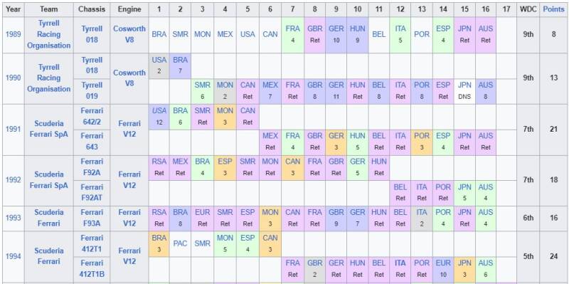 The history of Formula 1 is riddled with stories of drivers who had the skills, but never quite got the right machinery to make them successful. Jean Alesi is definitely one of those. He got his start in F1 in possibly the worst circumstances imaginable. It was halfway through the 1989 season, and Alesi was competing in the Formula 3000 championship, the equivalent of what these days is Formula 2. The Tyrrell F1 team meanwhile had gotten into a dispute with their driver Michele Alboreto, who promptly left the team in the middle of the raceweekend for the French Grand Prix. That meant Tyrrell had to draft in a replacement, and the story goes that Eddie Jordan - owner of the F3000 team that Alesi was driving for - not only pushed Alesi forward, but actually made a bet with team owner Ken Tyrrell that Alesi would do better than the other driver, Jonathan Palmer. Alesi finished that race in fourth place, way ahead of Palmer in tenth and even ahead of multiple world champion Nelson Piquet.